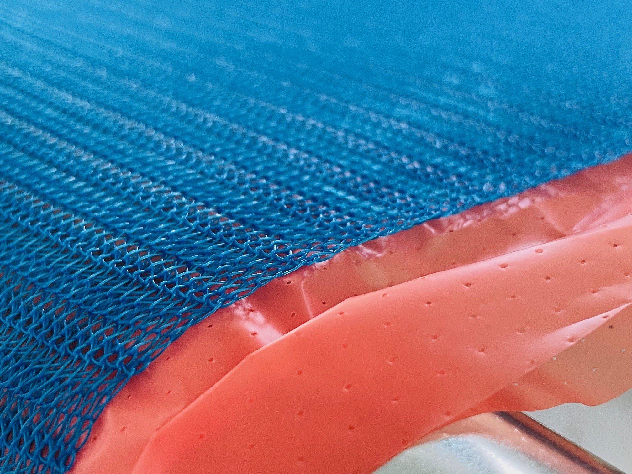 Rete di superficie tridimensionale e drenante , accoppiata con film distaccante microforato e utilizzata per lo scorrimento della resina durante i processi di infusione