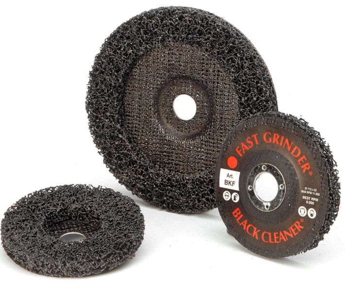 Dischi Black Cleaner su fibra per utilizzo su smerigliatrici angolari a velocità variabile, impiegato per ripulire superfici, sia metalliche che non (pietra, plastica, ecc), da rivestimenti di varia natura senza danneggiarle, con un’azione abrasive gentile ed aggressiva al tempo stesso.Principali settori di impiego: Carrozzeria, manutenziona navale, edilizia, saldatura.