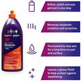 La pasta abrasiva media con cera 3M™ Perfect‐It™ combina la capacità di taglio di una pasta abrasiva con l'azione protettiva duratura di una cera professionale, per la rifinitura del gelcoat in un unico passaggio. Rimuove difetti e graffi di maggiore entità prodotti dagli abrasivi di grana P1000 o più fini, lasciando una finitura protettiva brillante