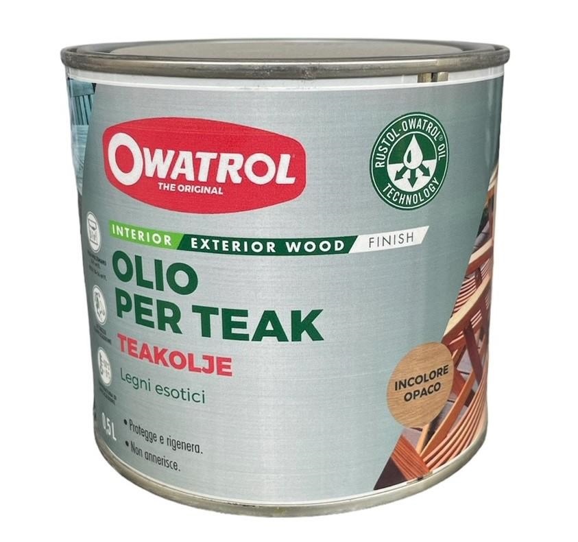 Owatrol Teak Olje è un olio specialmente formulato per il trattamento del teak, allungandone la durata e preservandone la bellezza.