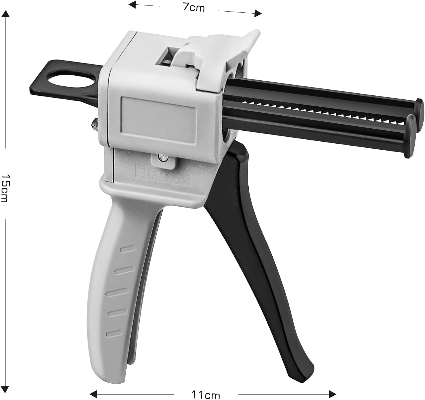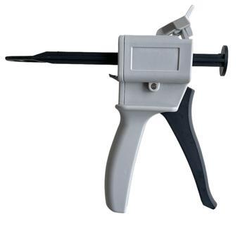 Pistola manuale per l'applicazione degli adesivi bi-componenti tipo Adekit o Sikafast in bicartuccia da ml.50. Dotata di spintore per rapporto di miscelazione 1:1 , 2:1