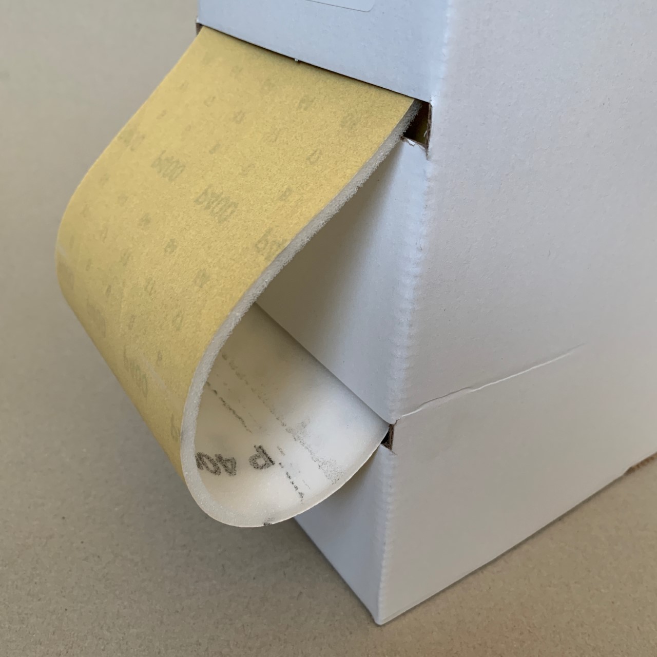 Carta abrasiva all'ossido di alluminio su supporto in spugna. Ideale per carteggiature a mano su superfici irregolari o complesse. La sua flessibilità e morbidezza rende questo prodotto multifunzione. Disponibile in rotolo , dalla grana P.150 alla P.500.